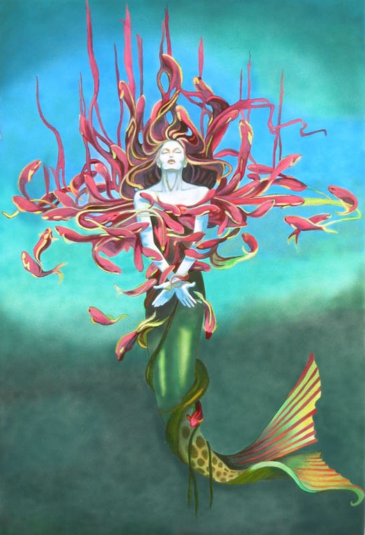 Watercolor pencil and acrylic paint (airbrush) on aquarel paper. 65 x 50 cm. Framed. Price: €300 / $400